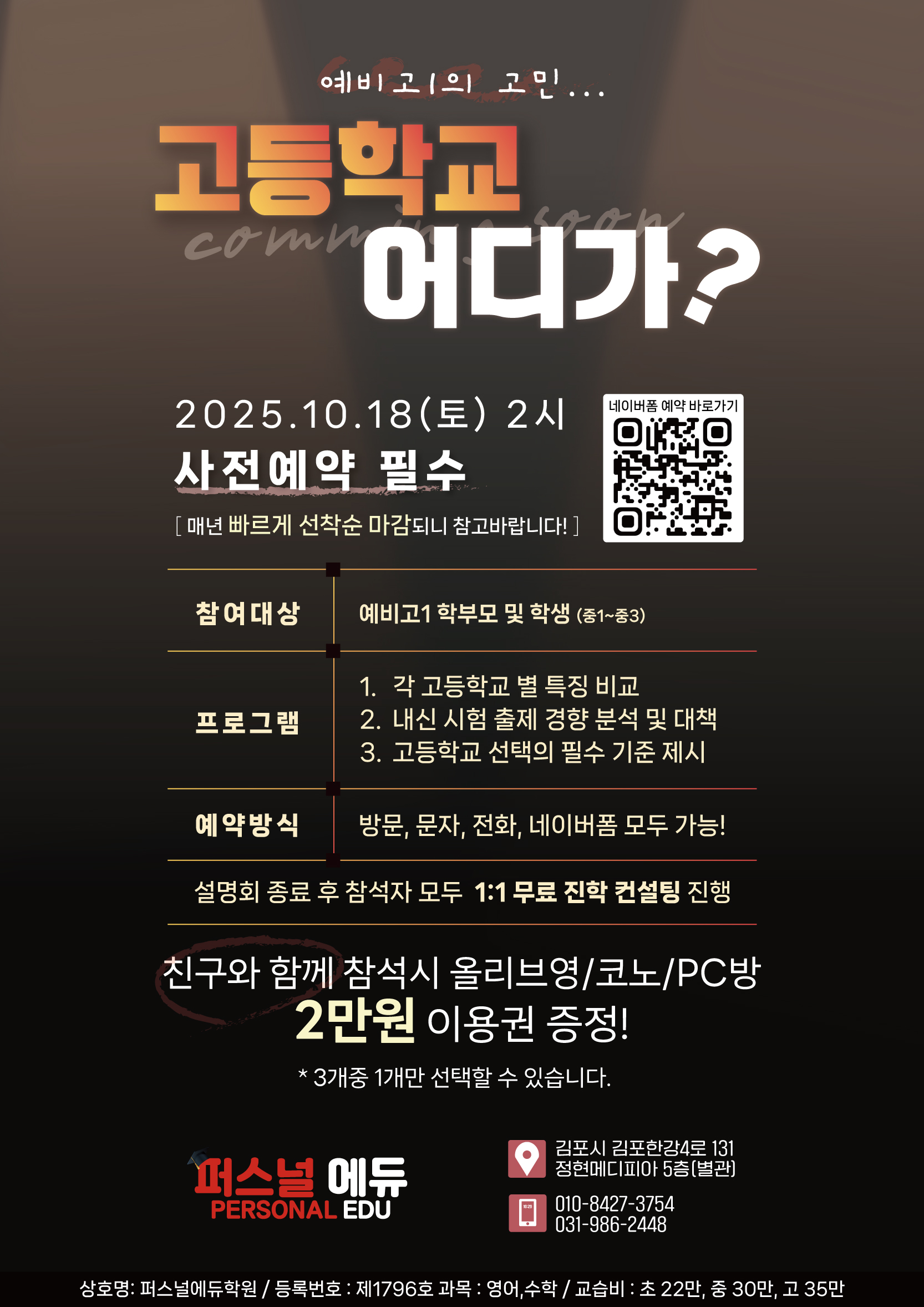 퍼스널에듀 예비고1 고등학교 입시설명회 160명 이상 참석!