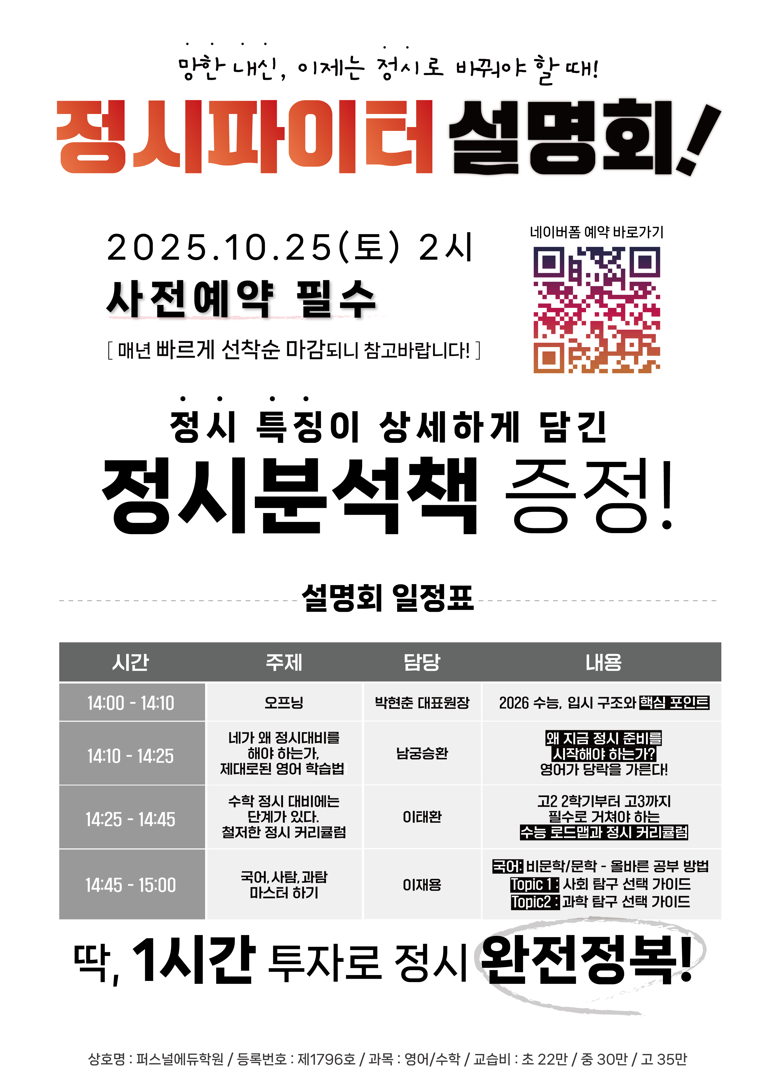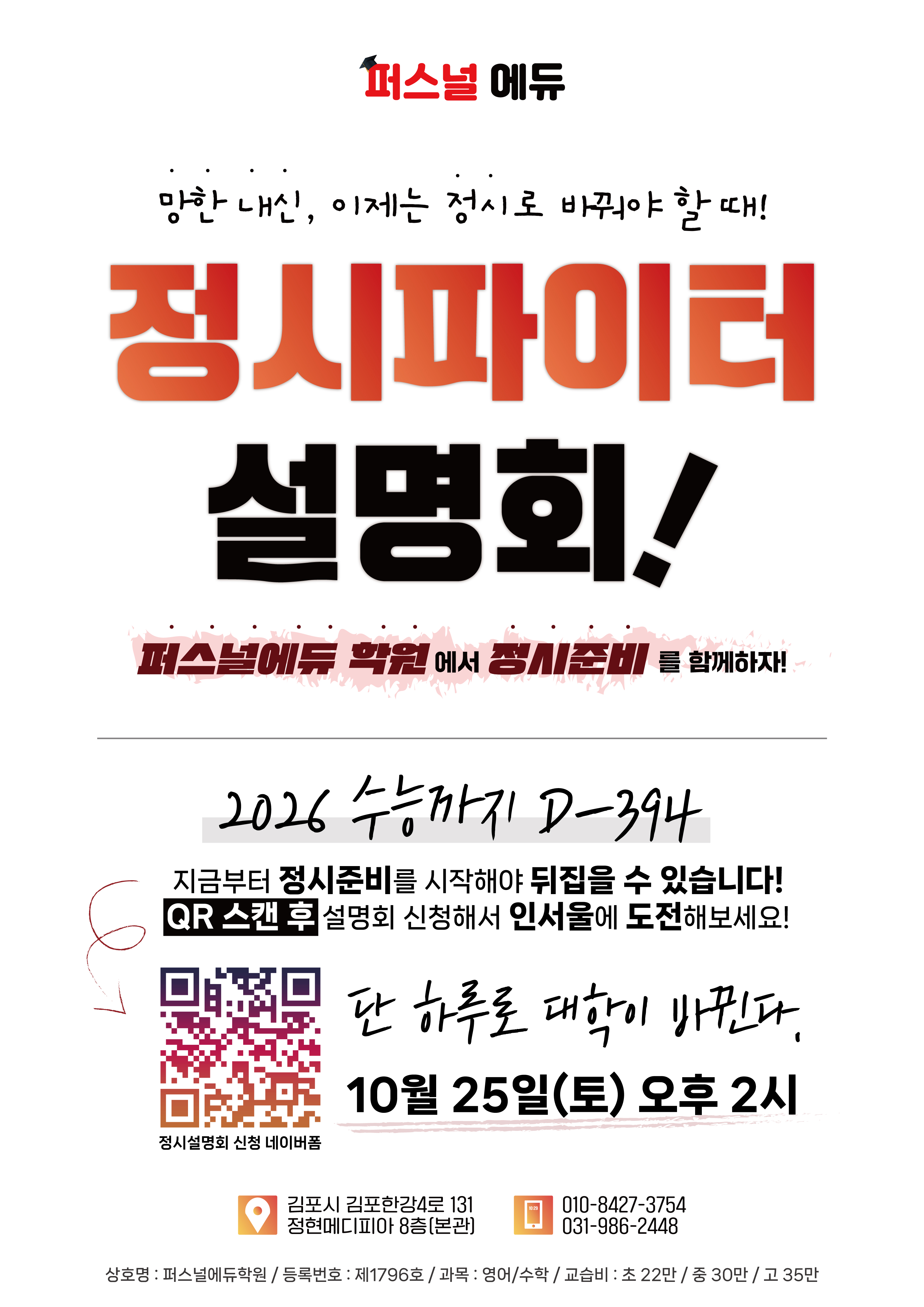 정시는 또 하나의 기회입니다.퍼스널에듀가 함께하겠습니다.